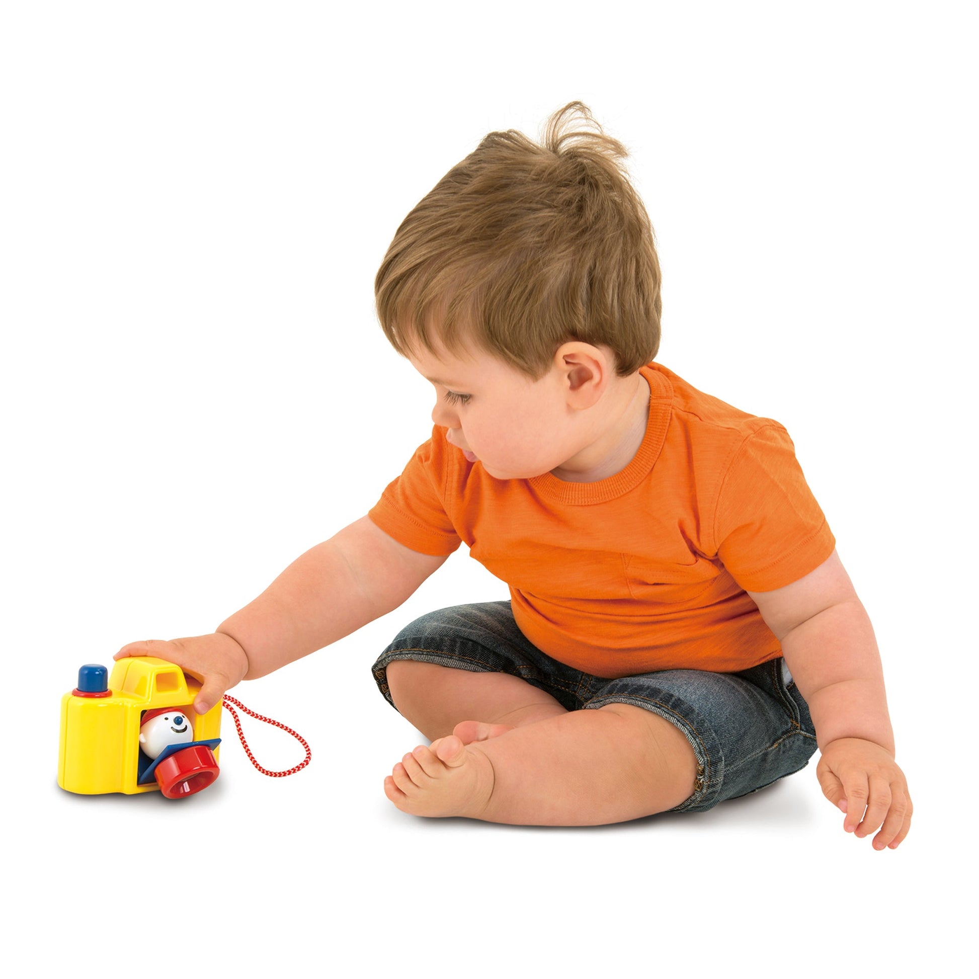 Point, shoot and... surprise! A funny clown pops out when the button is pressed. With a squeaker button and a see through viewfinder this first camera will provide the child with hours of fun. Length 12.5cm
